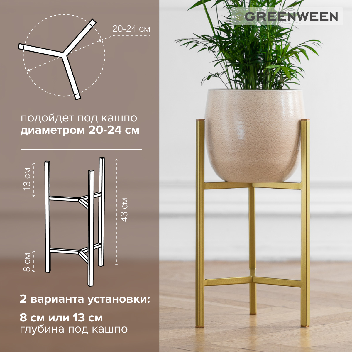 Подставка под комнатные растения в золотом цвете для любителей интерьера в стиле лофт, сканди и минимализм! Подойдёт для размещения кашпо с крупным растением на полу. Золотой цвет подставки выгодно подчеркивает красоту кашпо и комнатного растения, делая обстановку помещения более стильной. Пластиковые заглушки в черном цвете на ножках защитят пол от царапин.