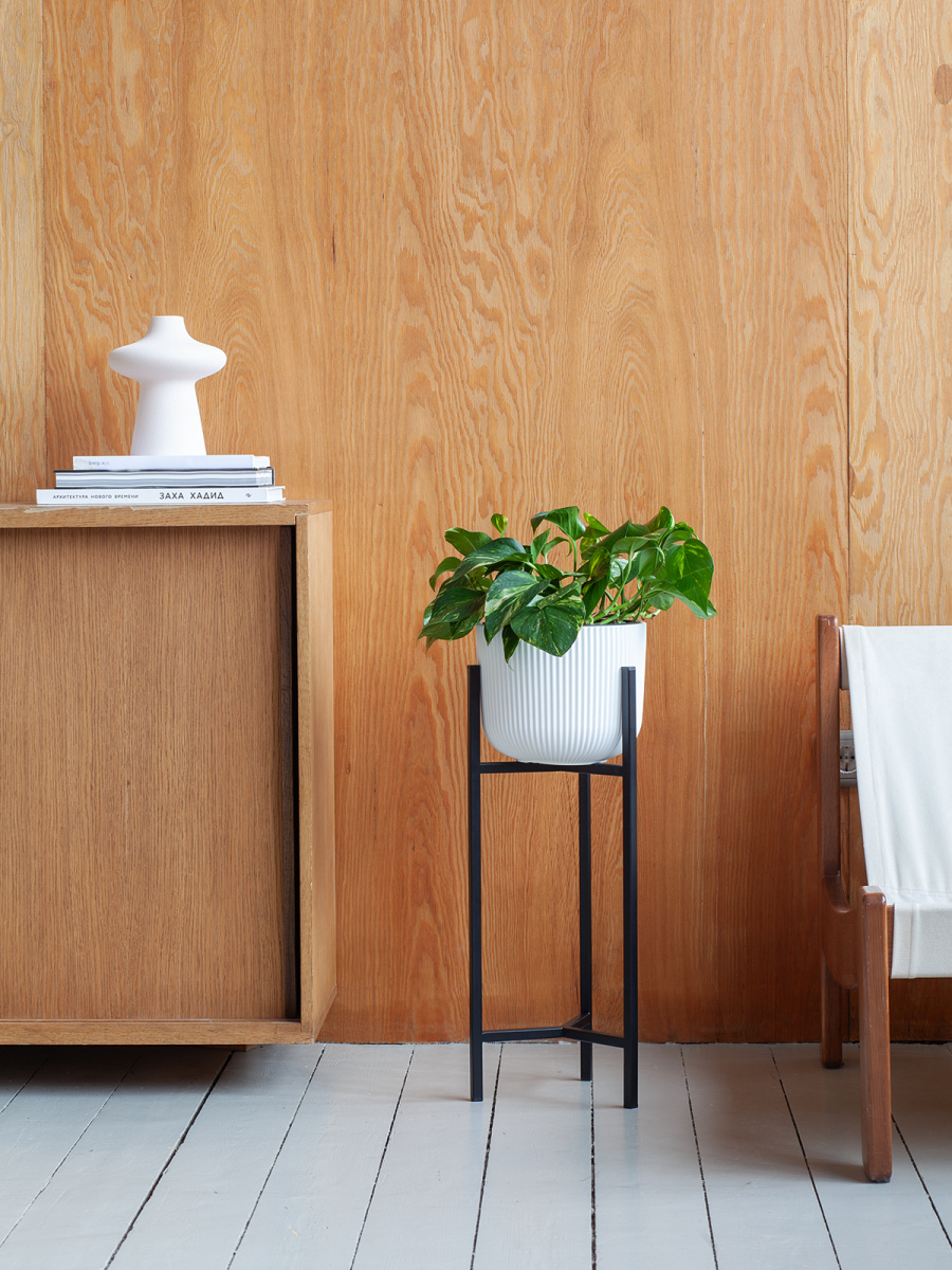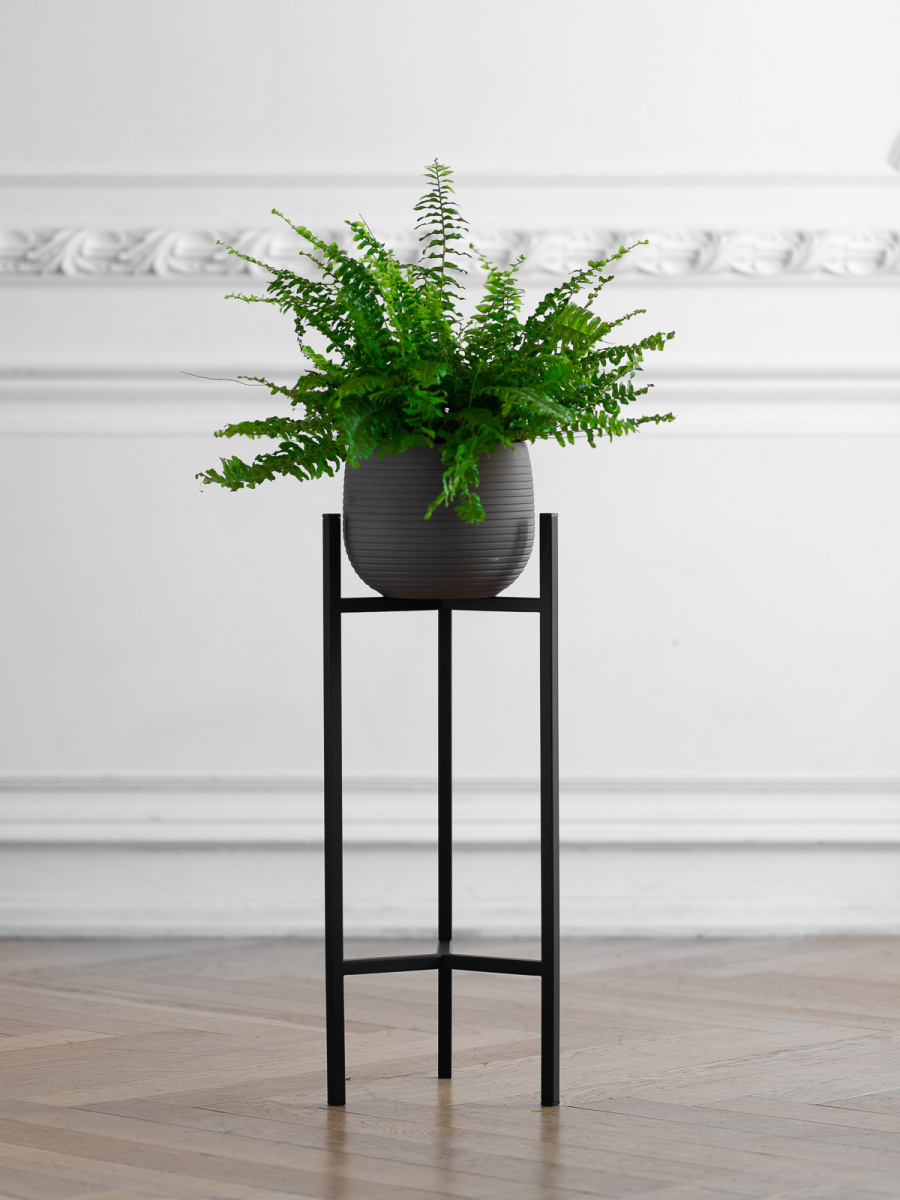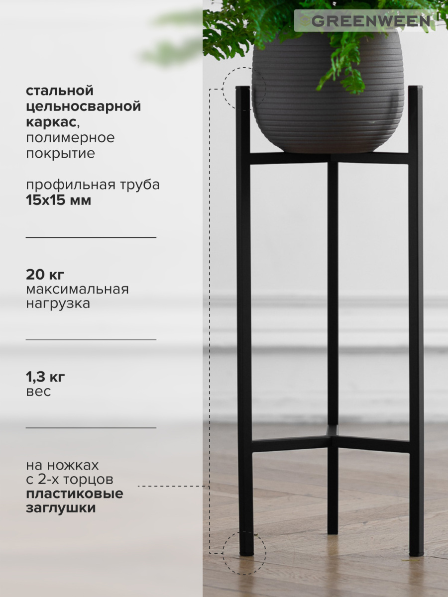Подставка под комнатные растения в черном цвете для любителей интерьера в стиле лофт, сканди и минимализм! Подойдёт для размещения кашпо с крупным растением на полу. Черный цвет подставки выгодно подчеркивает красоту кашпо и комнатного растения, делая обстановку помещения более стильной. Пластиковые заглушки на ножках защитят пол от царапин.