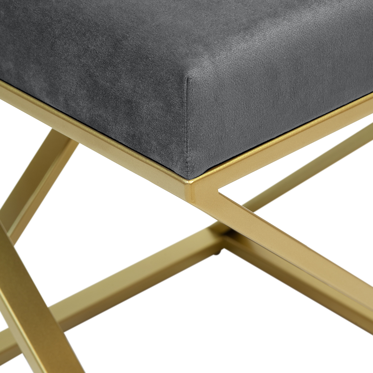Пуф CHELSEA с золотым основанием и велюровой подушкой.