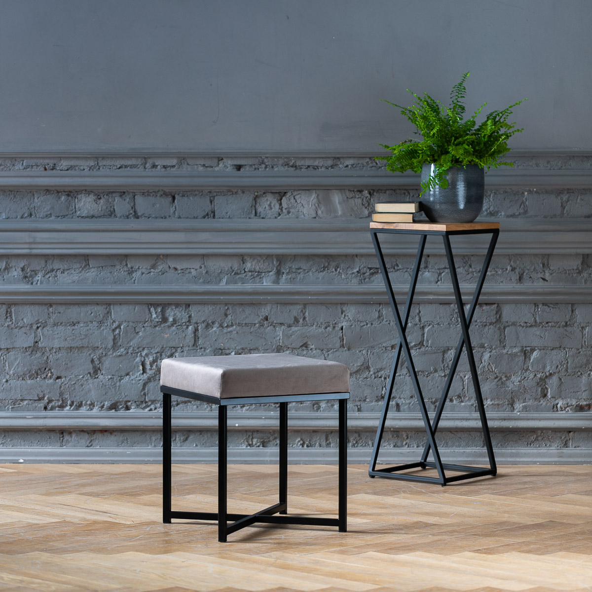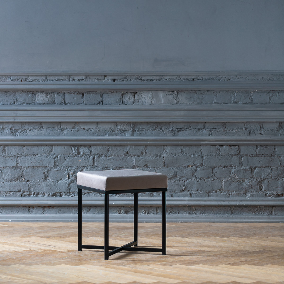 Пуф CRUZ с черным основанием и велюровой подушкой.