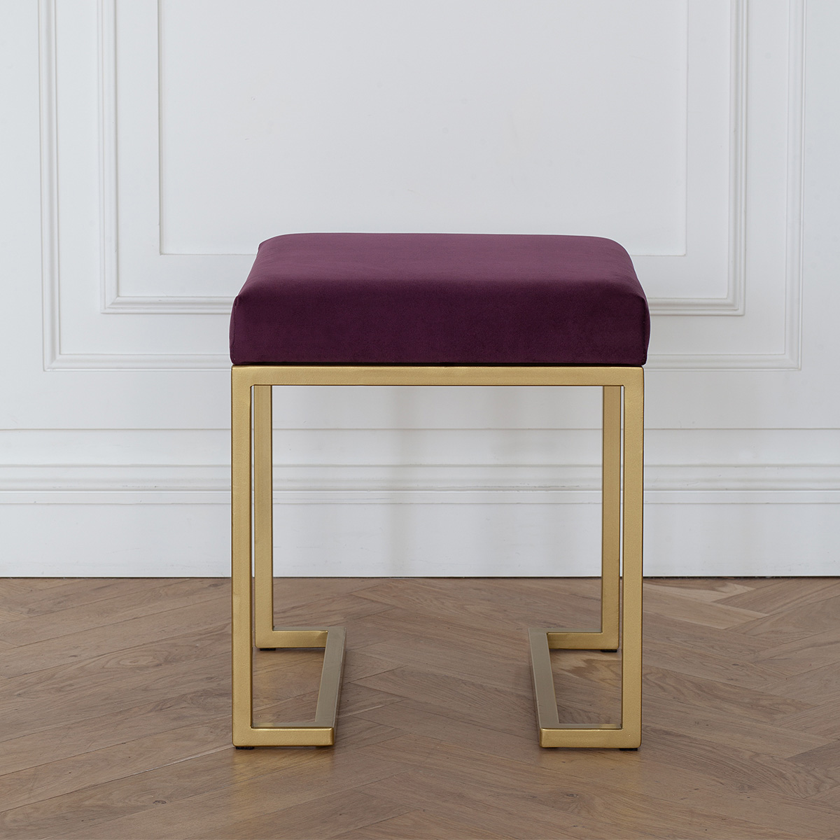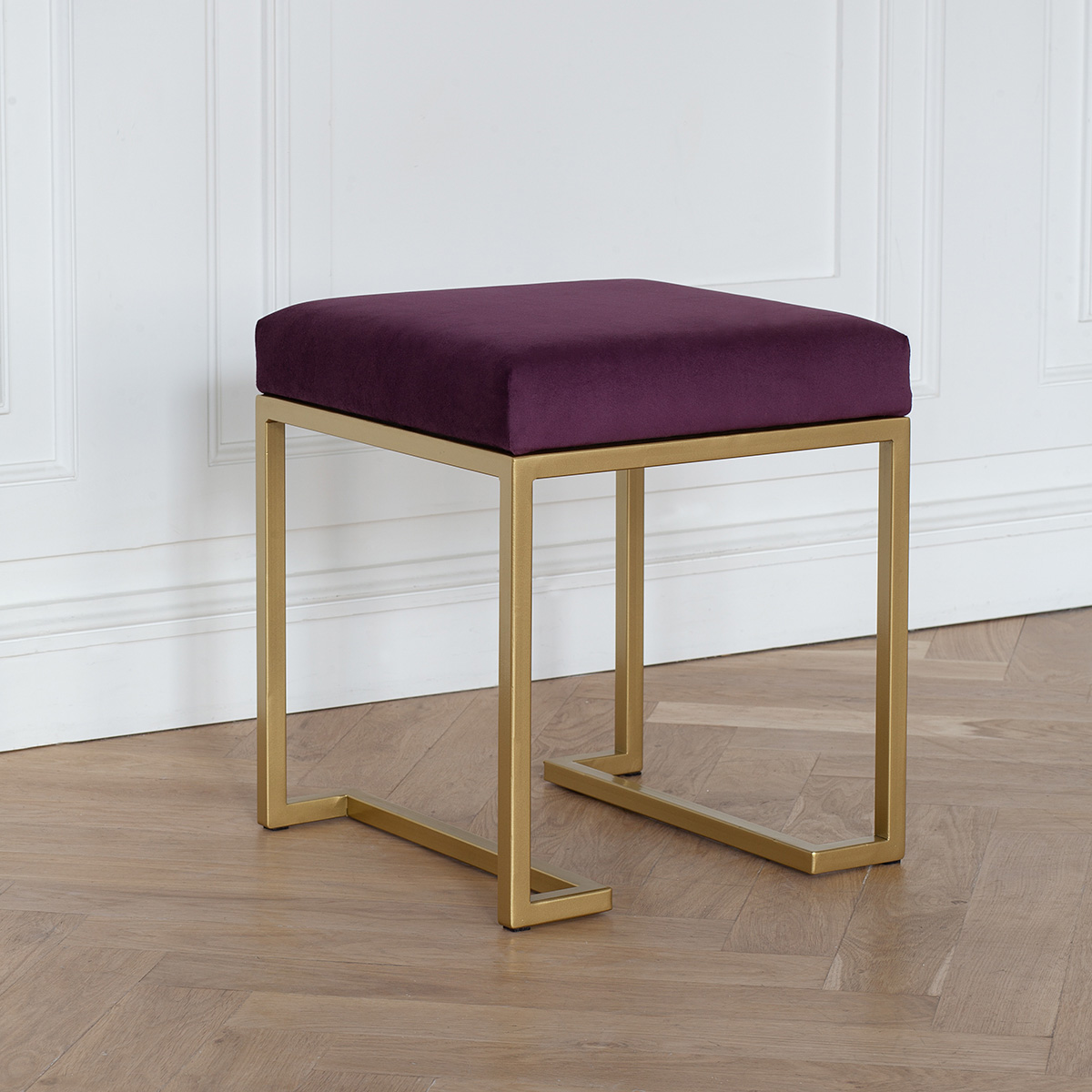 Пуф OMEGA с золотым основанием и мягким велюровым сиденьем цвета Marsala.