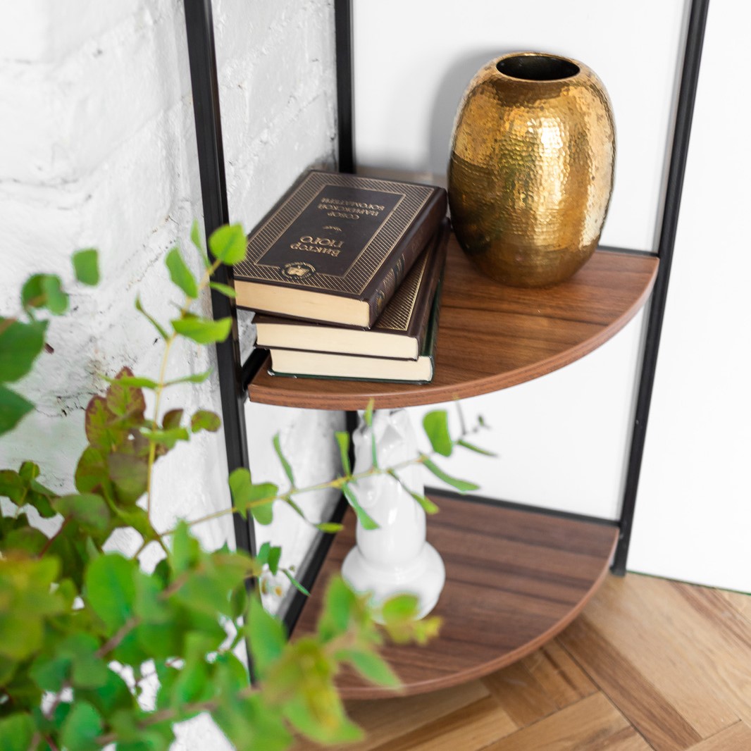 Черный металлический стеллаж ALLEN с полками из ЛДСП привлекает внимание элегантным дизайном и функциональностью. Подойдет для хранения книг, игрушек, декора, фотографий или размещения растений.
