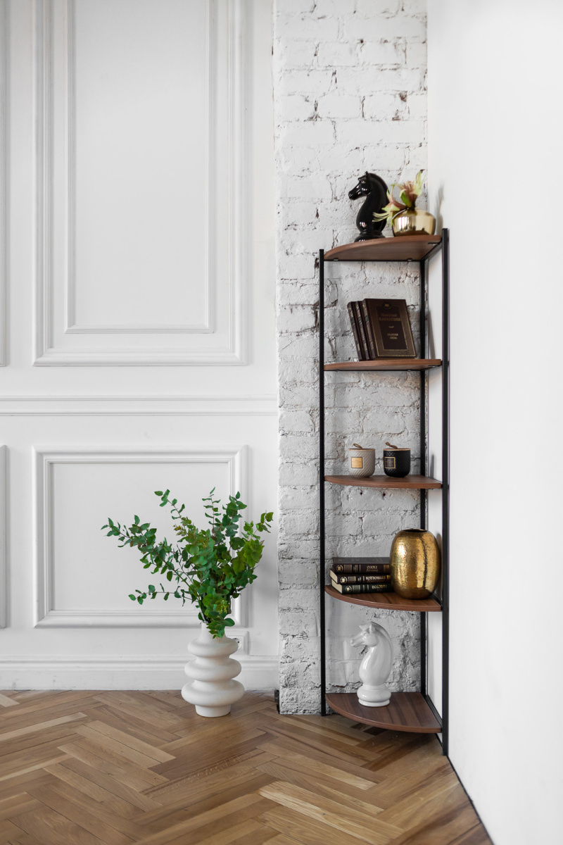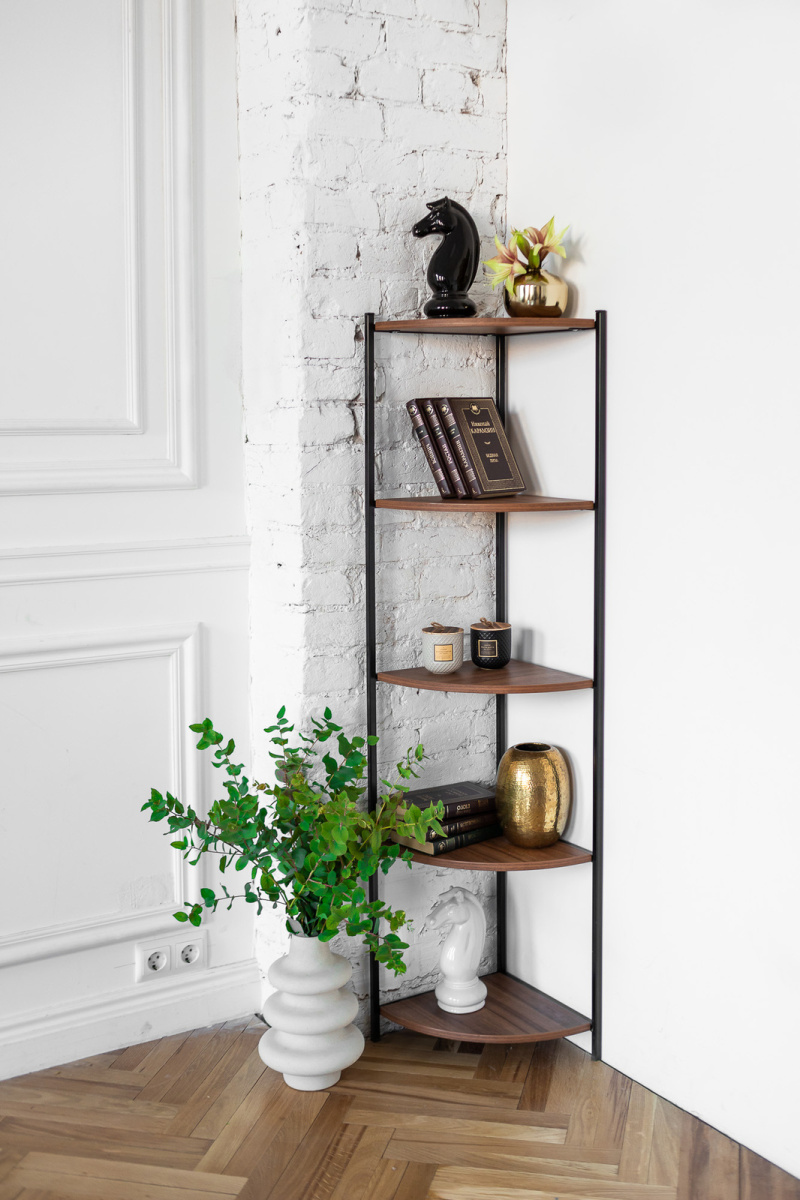 Компактный напольный стеллаж поможет организовать пространство в гостиной, спальне, кабинете, офисе и ванной комнате. Стеллаж с открытыми полками подойдет для квартиры, загородного дома, салона и студии. Подойдет для интерьеров в стиле хайтек, арт-деко, лофт, минимализм и сканди.