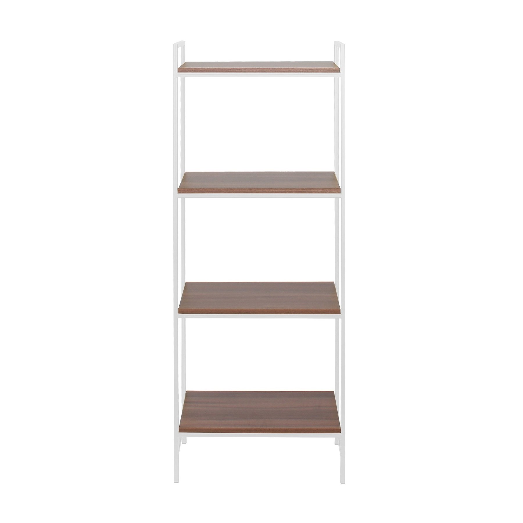 Белый металлический стеллаж ALTO с полками из ЛДСП в цвете Орех привлекает внимание элегантным дизайном и функциональностью. Стильный вместительный стеллаж поможет организовать пространство в гостиной, спальне, кабинете и ванной комнате.
