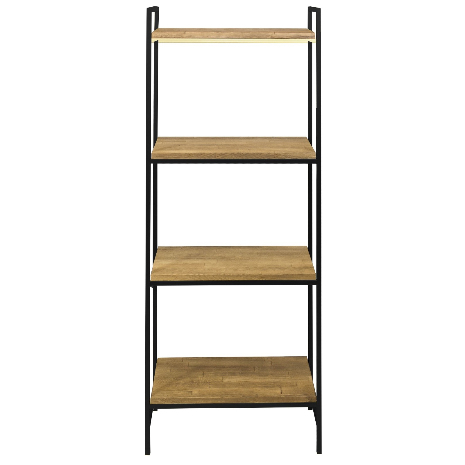 Каркас стеллажа изготовлен из стали, окрашенной порошковой краской. Полки стеллажа выполнены из дуба толщиной 20 мм, выдерживают нагрузку до 5 кг. Полки из дуба покрыты специальным износостойким лаком, защищают древесину от царапин и влаги. На открытых полках удобно разместить декор, книги, фотографии и комнатные растения. Напольный стеллаж не требует дополнительного крепления к стене, устойчив за счет собственного веса.