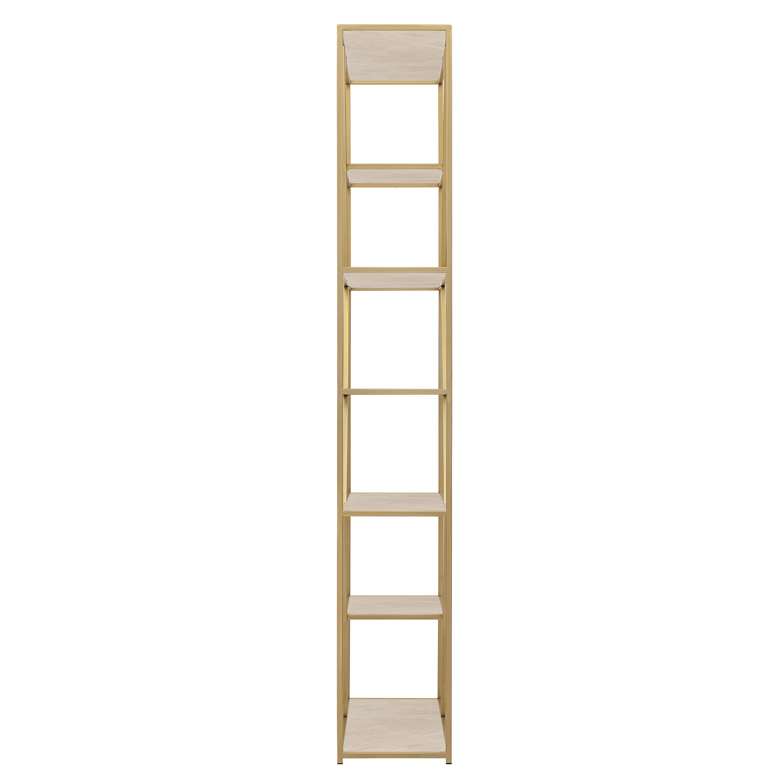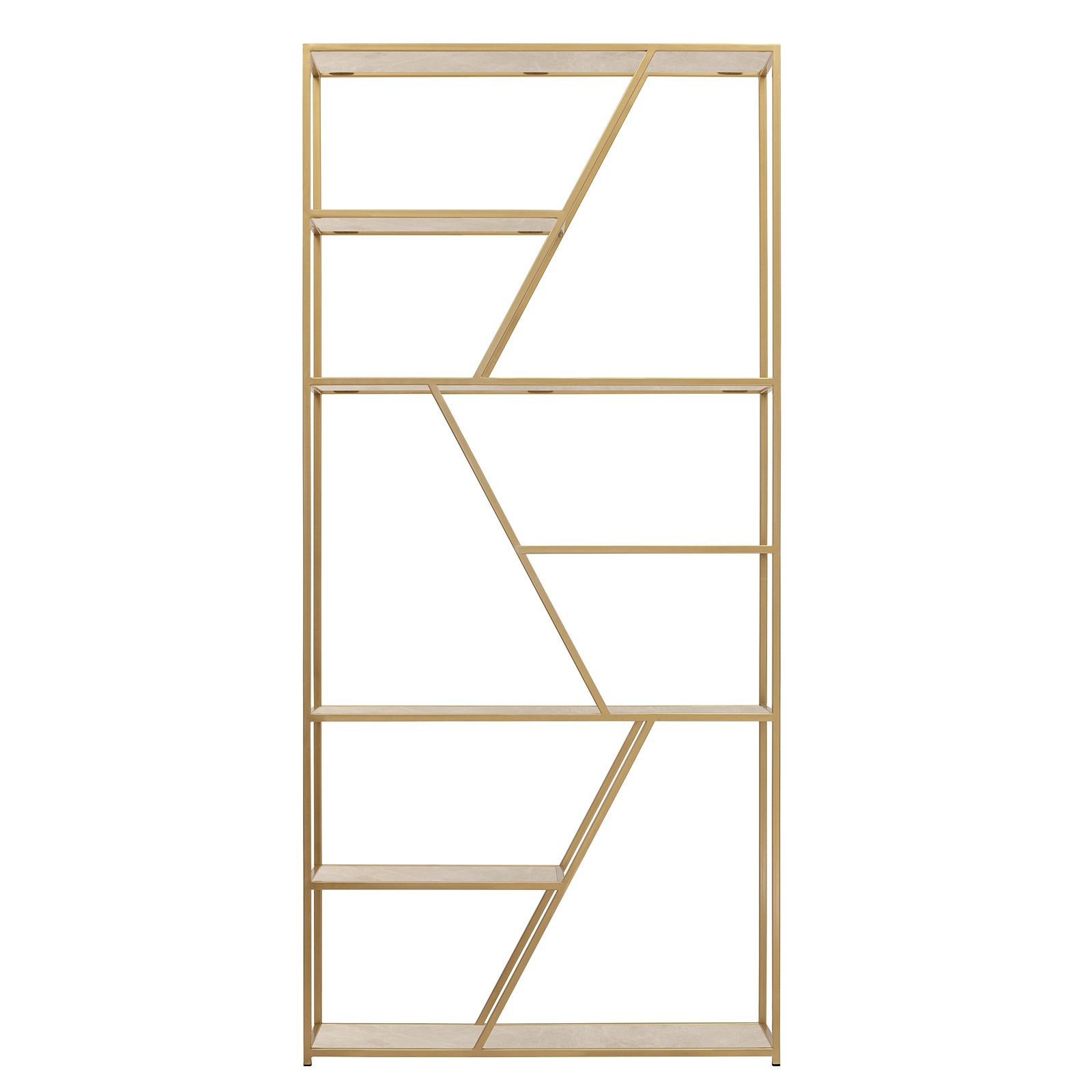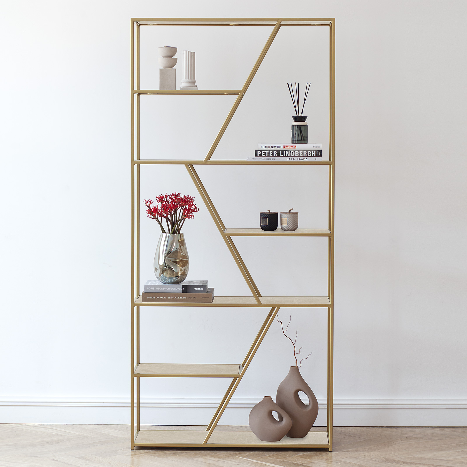 Золотой стеллаж ARNETTA с полками из натурального камня привлекает внимание своим элегантным дизайном и функциональностью. Он идеально впишется в любой интерьер, будь то гостиная, спальня или кабинет.