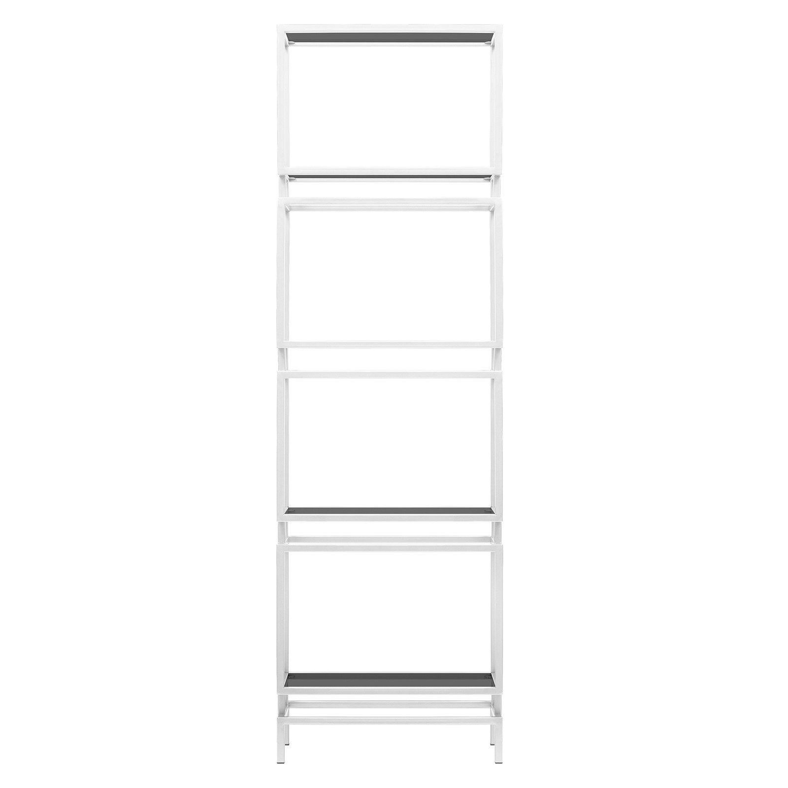 Белый металлический стеллаж BRICK с полками из закаленного тонированного стекла привлекает внимание элегантным дизайном и функциональностью.