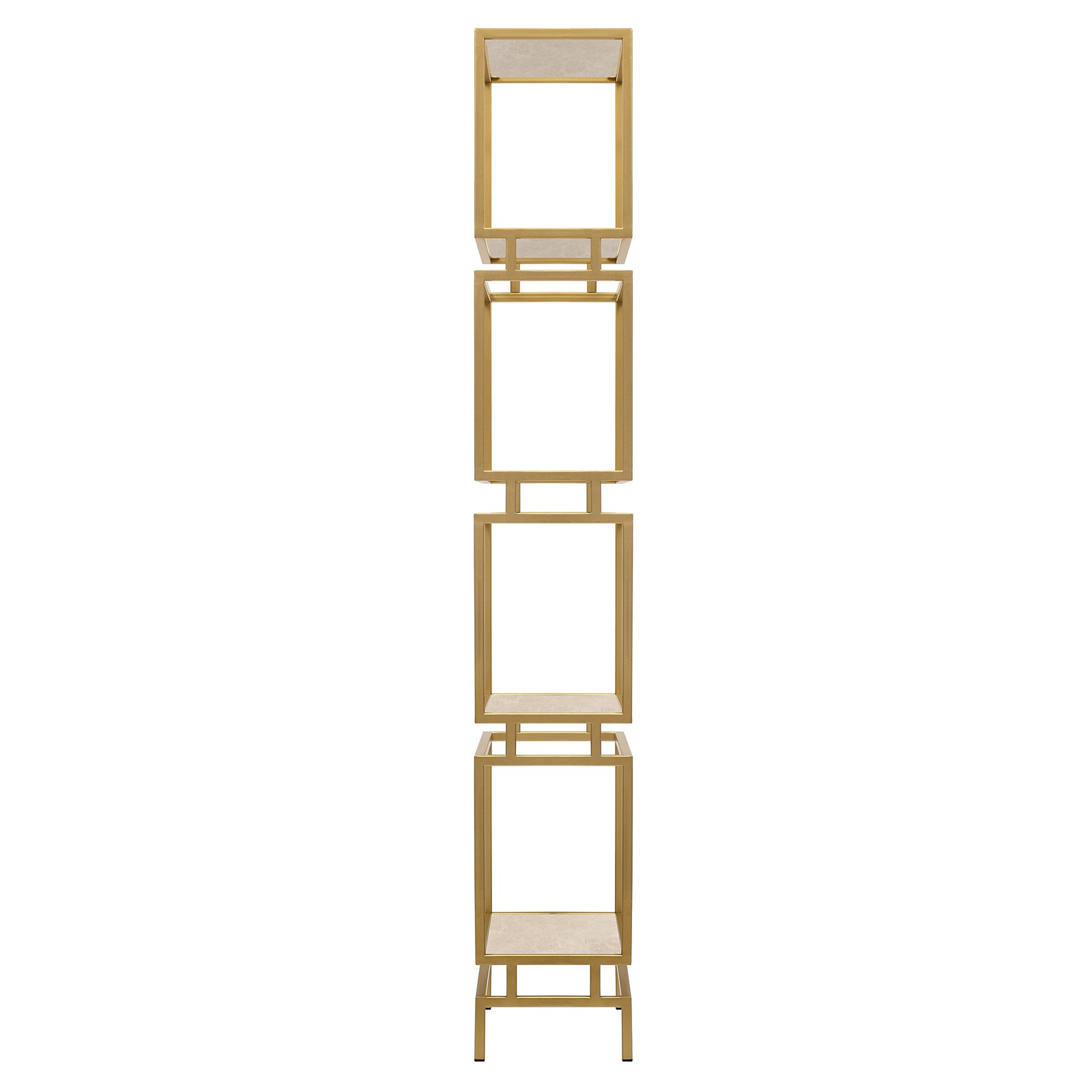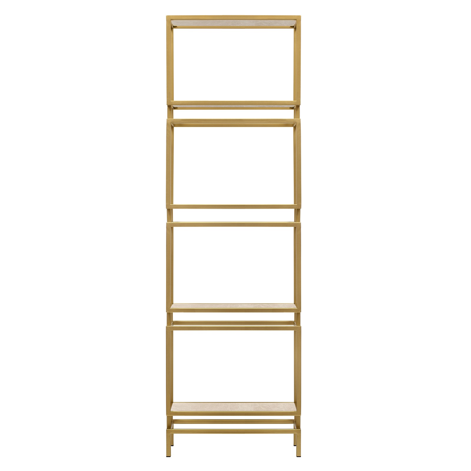 Золотой металлический стеллаж BRICK с полками из натурального камня привлекает внимание элегантным дизайном и функциональностью.