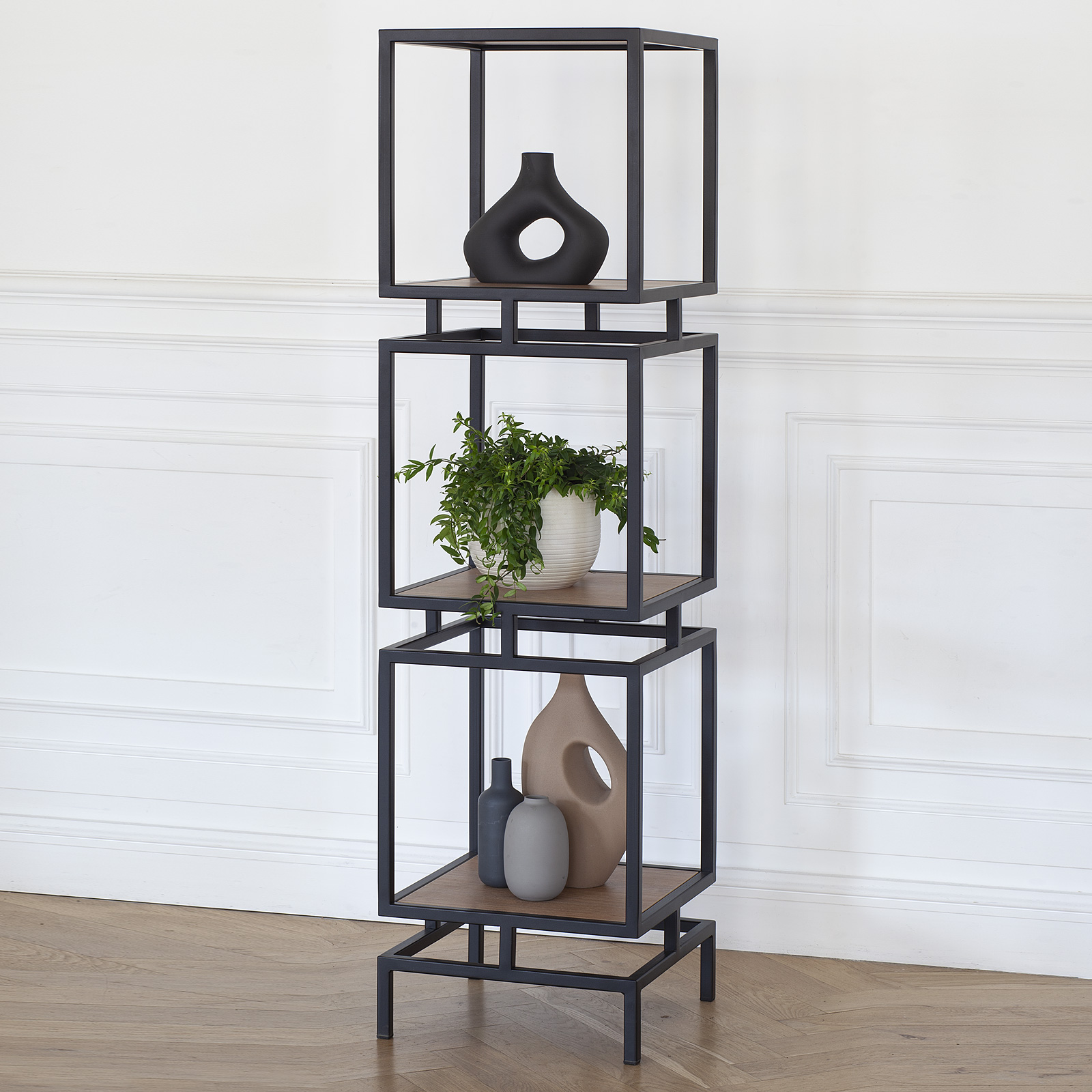 Черный стеллаж CUBIC-3 с оригинальными кубическими нишами – стильное решение для современного интерьера. Его компактный размер позволяет легко разместить стеллаж в гостиной, столовой, спальне или прихожей.