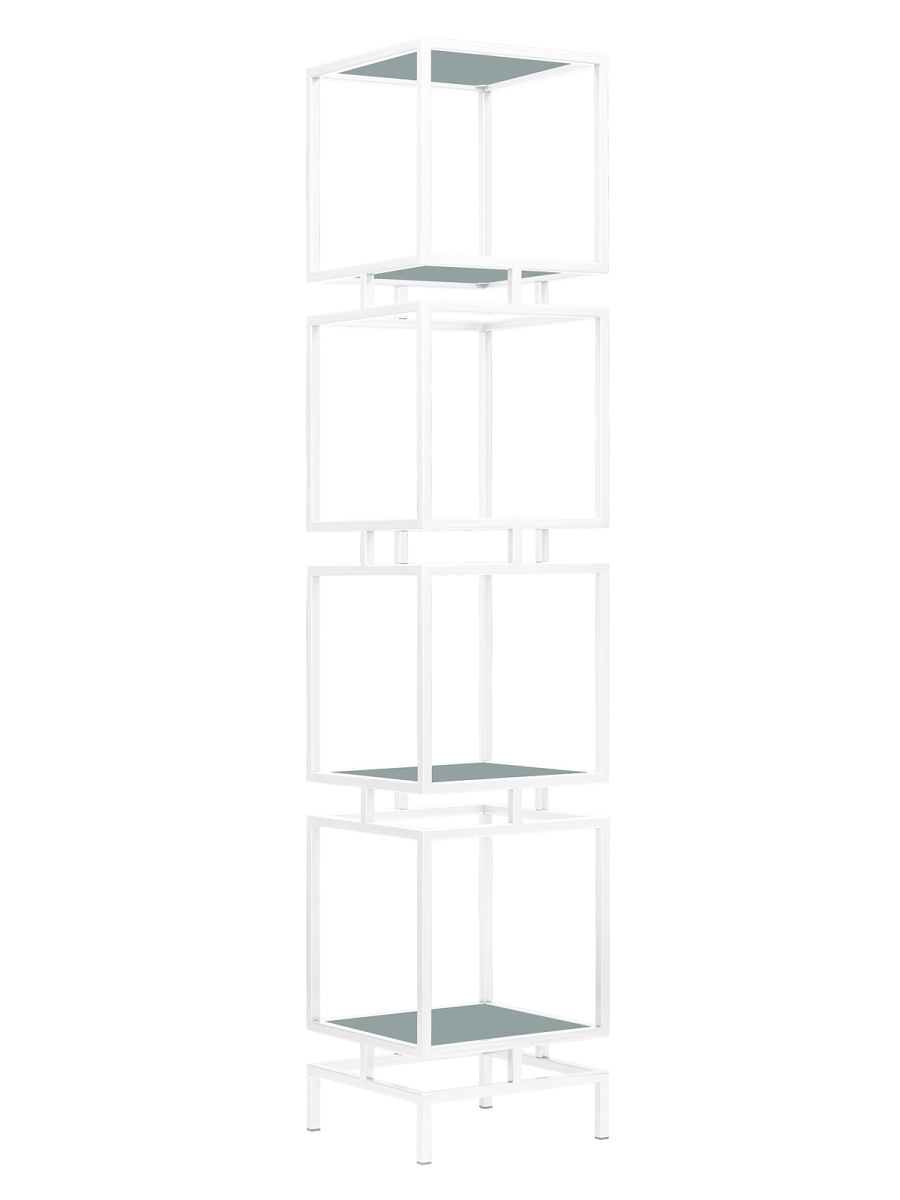 Металлический стеллаж станет украшением квартиры, загородного дома, салона или студии. Коллекция CUBIC-4 гармонично сочетается с пуфами OMEGA и консолями TORI.