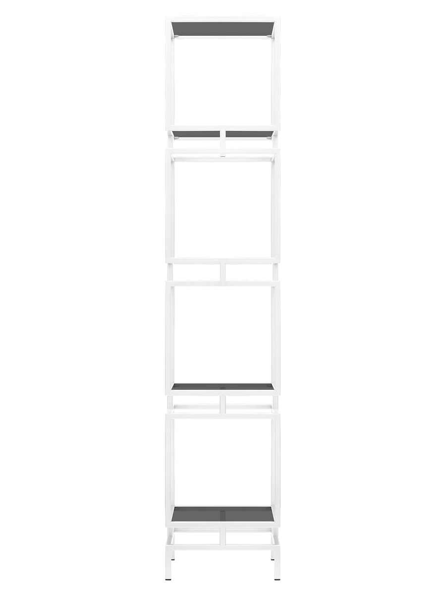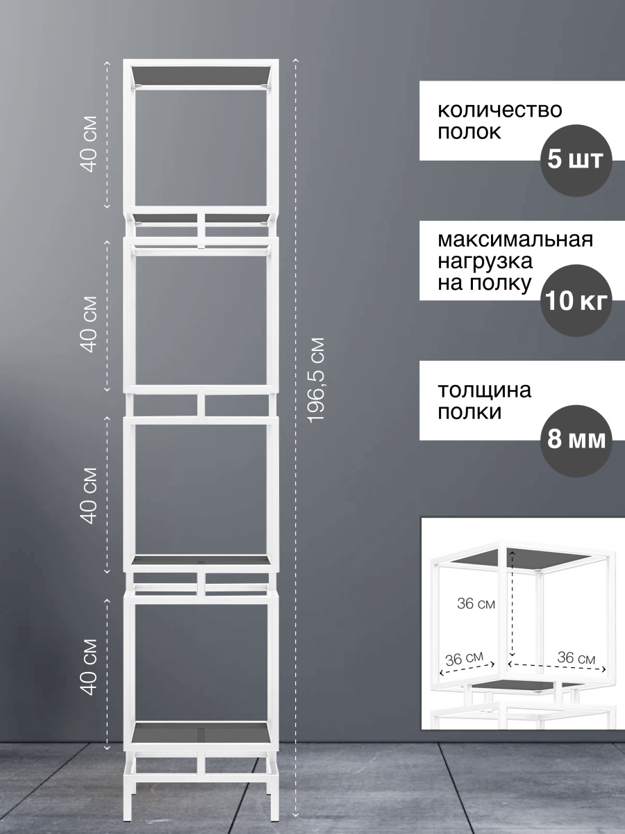 Белый металлический стеллаж CUBIC-4 с полками из закаленного тонированного стекла привлекает внимание элегантным дизайном и функциональностью.