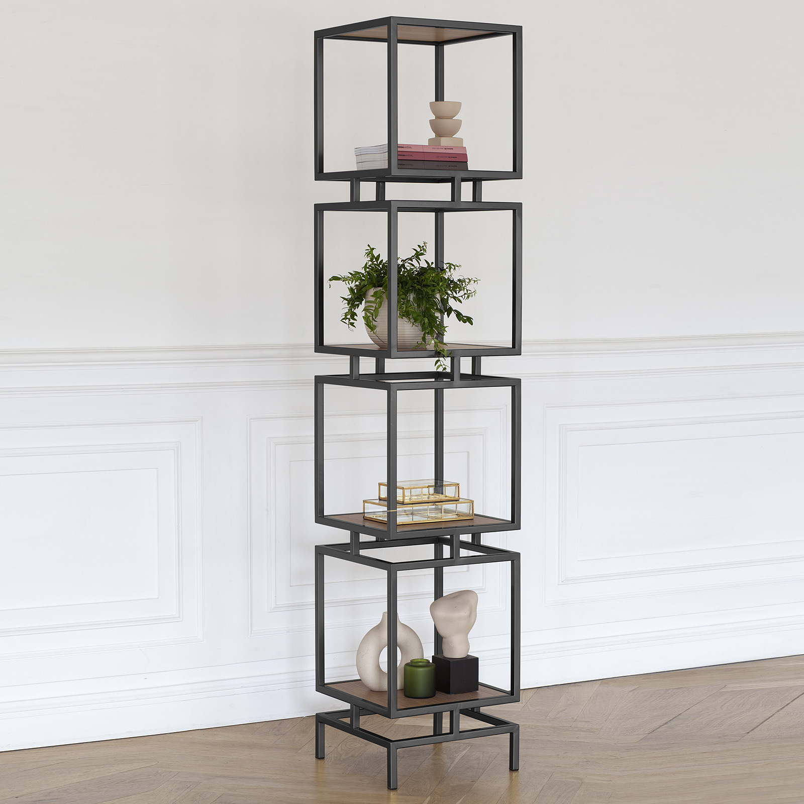 Металлический стеллаж станет украшением квартиры, загородного дома, салона или студии. Коллекция CUBIC-4 гармонично сочетается с пуфами OMEGA и консолями TORI.