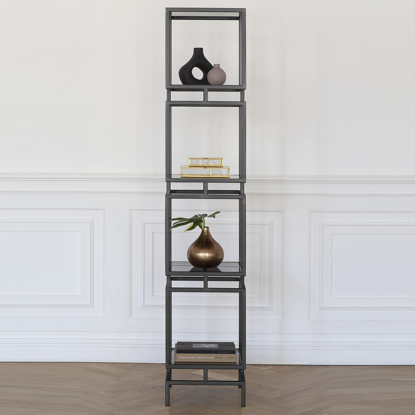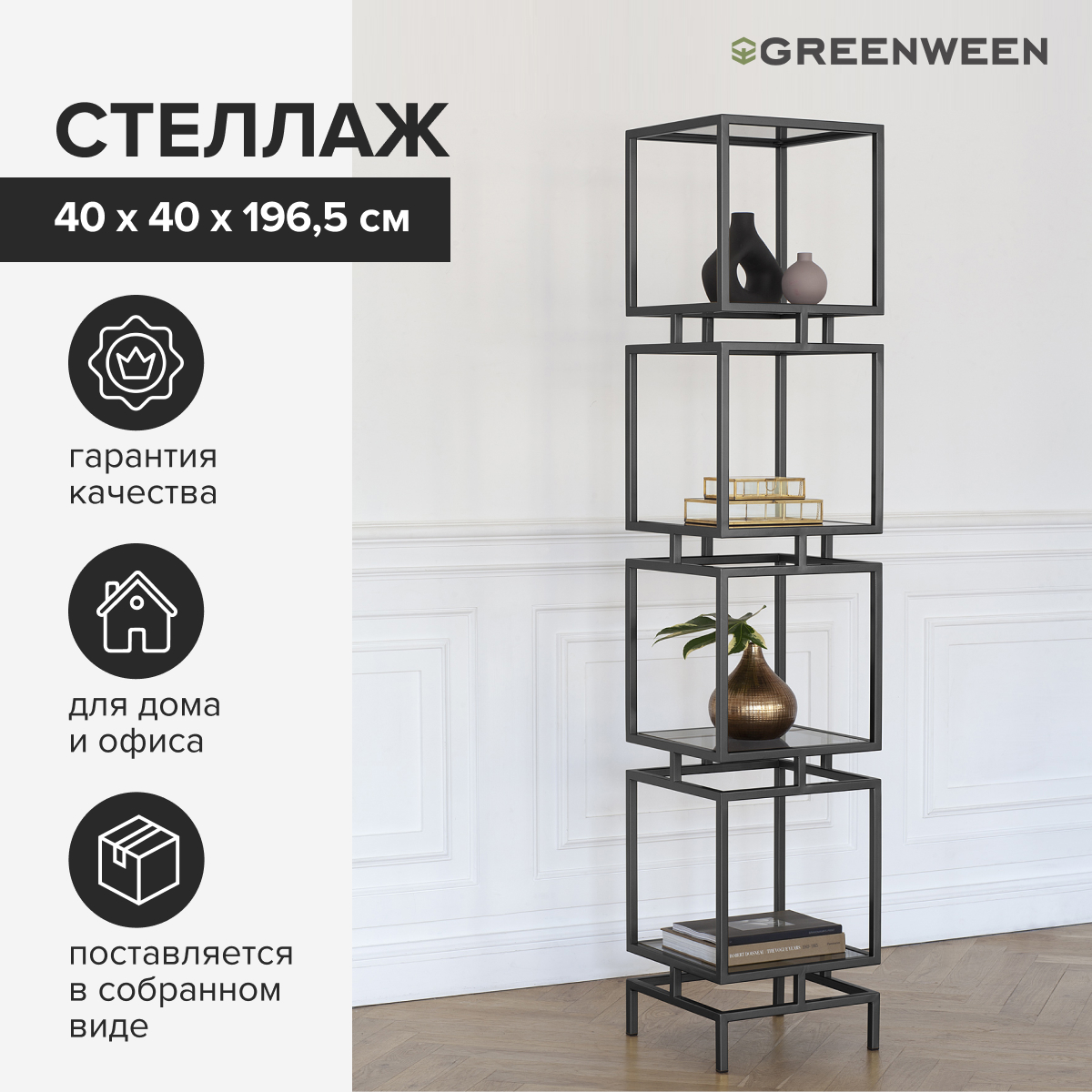 Черный металлический стеллаж CUBIC-4 с полками из закаленного тонированного стекла привлекает внимание элегантным дизайном и функциональностью.