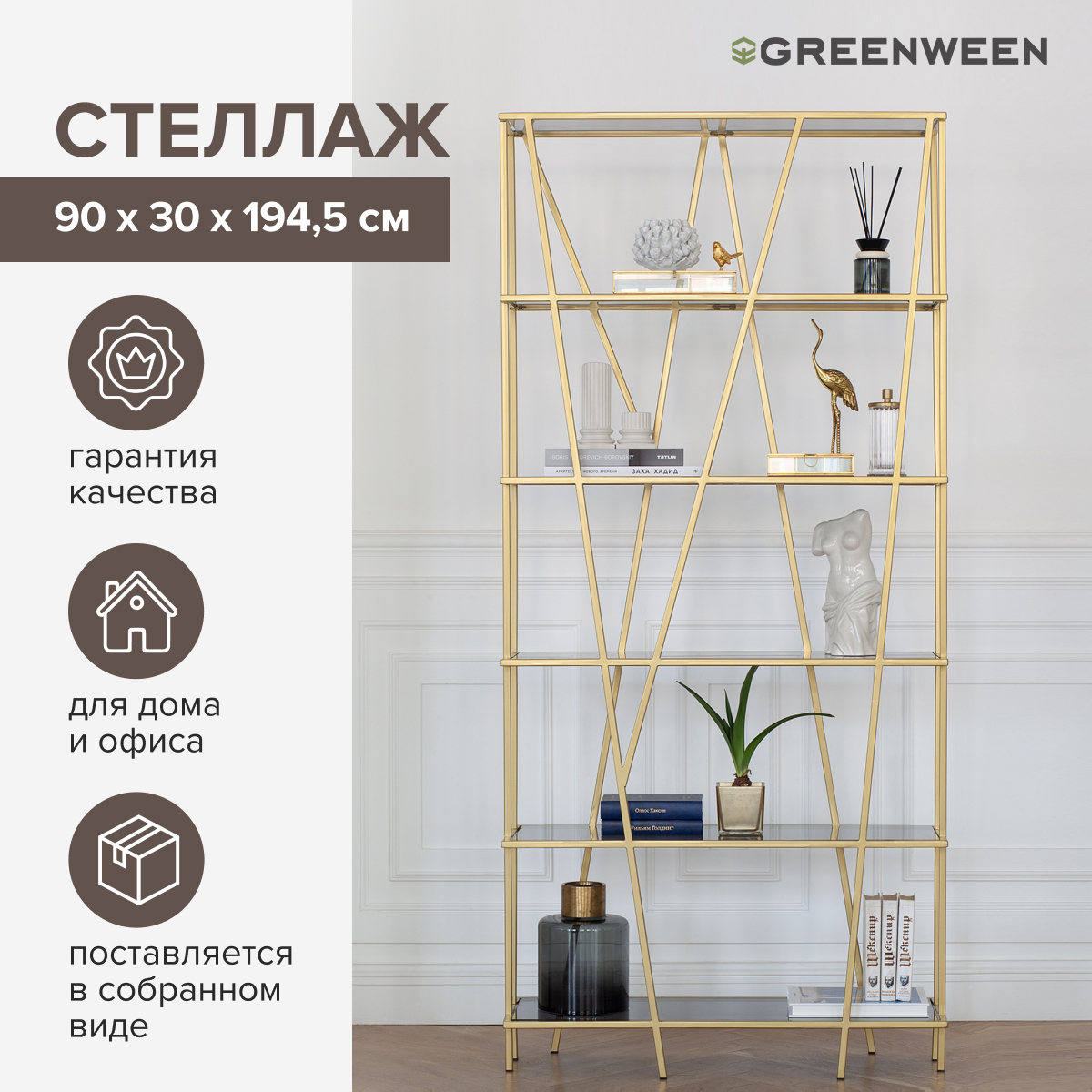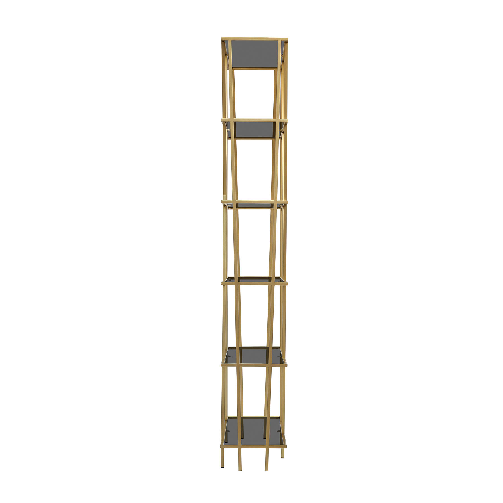 Золотой стеллаж EVA с полками из закаленного тонированного стекла – стильное и функциональное решение для любого интерьера. Он не только украшает пространство, но и помогает организовать хранение вещей.