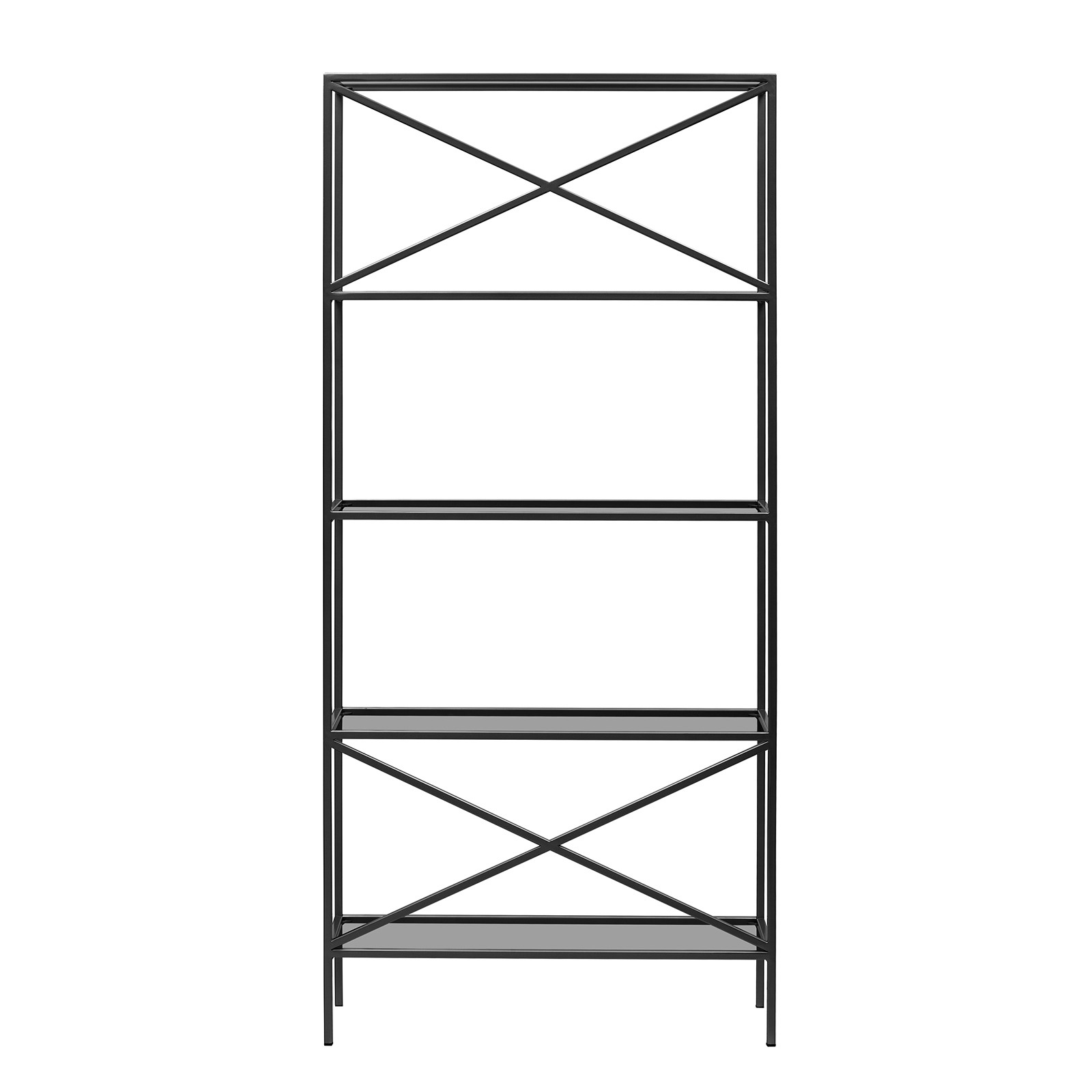 Вместительный стеллаж KARIN создает уникальный дизайн и зонирует помещение. Утонченное сочетание черного каркаса и полок из закаленного тонированного стекла позволит разместить стеллаж в любом интерьере.