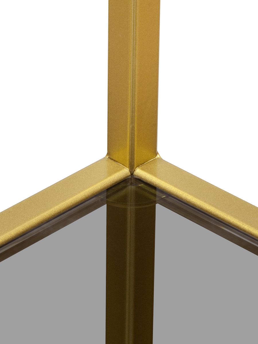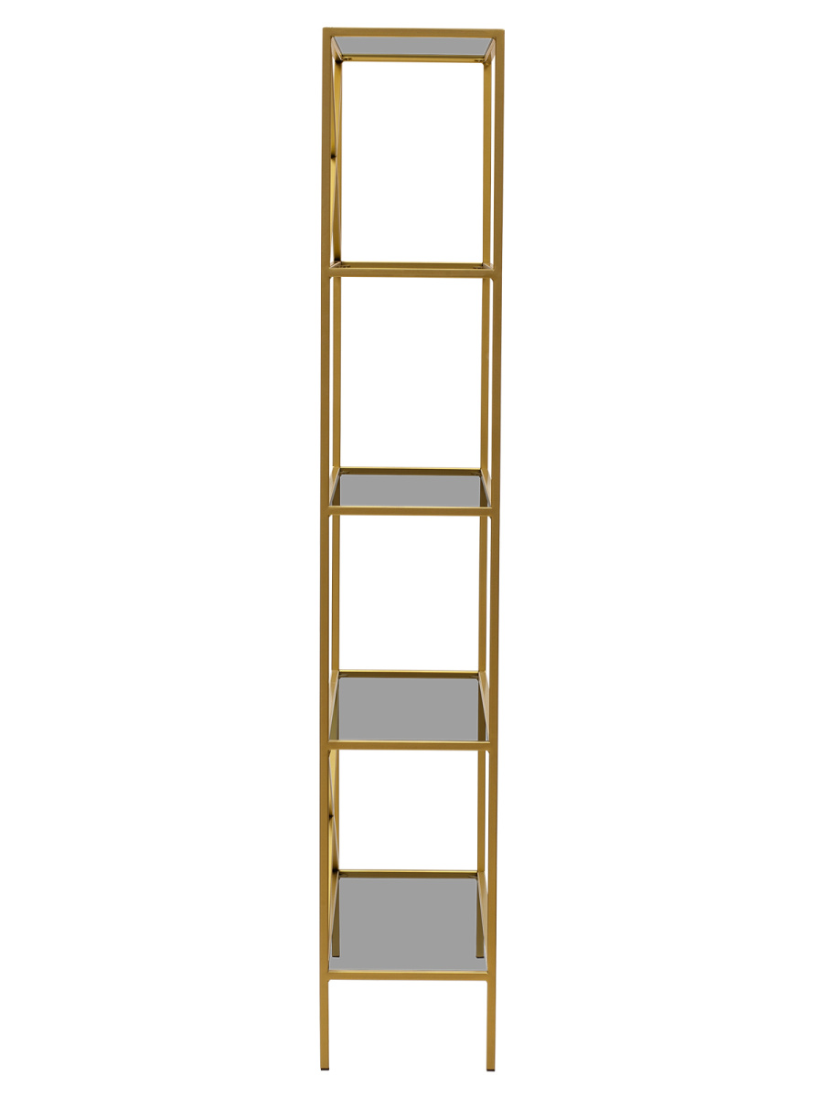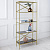 Золотой металлический стеллаж KARIN с полками из закаленного тонированного стекла привлекает внимание элегантным дизайном и функциональностью.