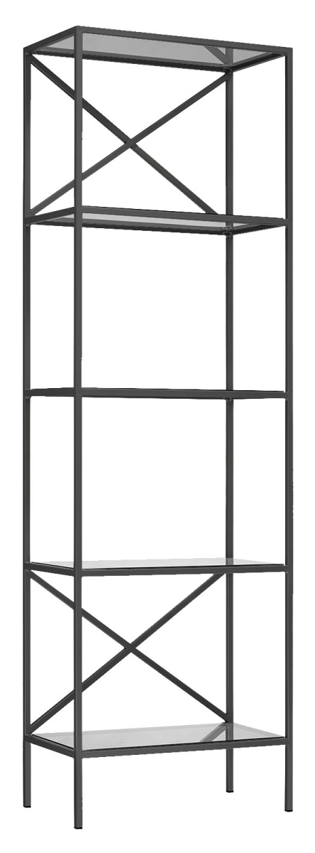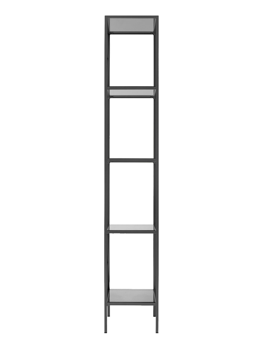 Вместительный стеллаж KARIN создает уникальный дизайн и зонирует помещение. Утонченное сочетание черного каркаса и полок из закаленного тонированного стекла позволит разместить стеллаж в любом интерьере.