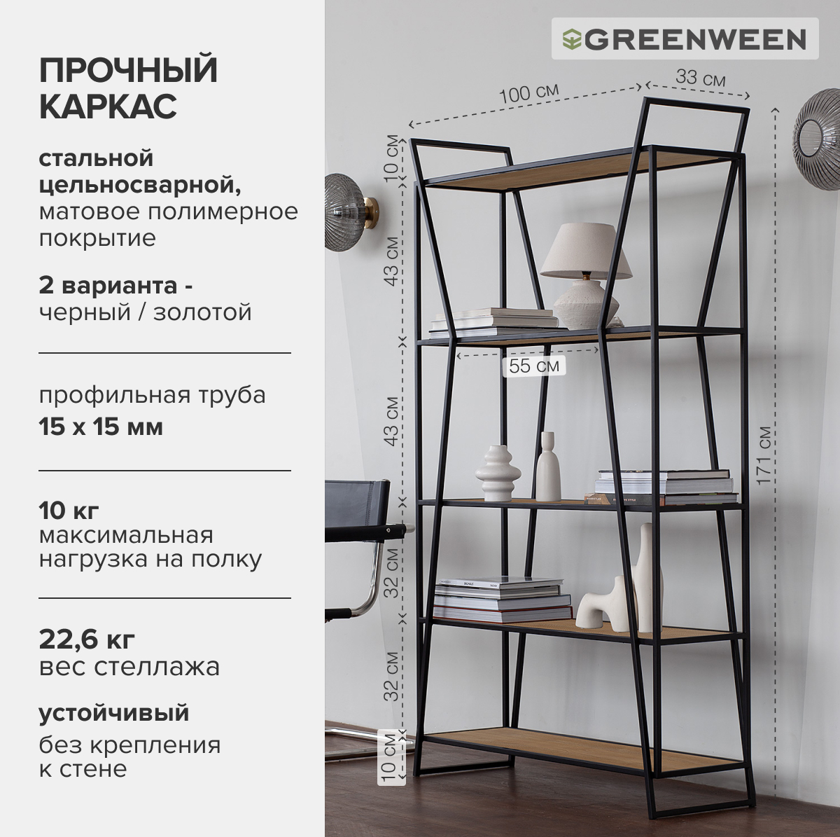 Современный стеллаж OSLO – это стильное и функциональное решение для вашего дома или офиса. Прочный каркас стеллажа OSLO из стальных труб с порошковым покрытием гарантирует долговечность, а полки из ЛДСП до 10 кг.