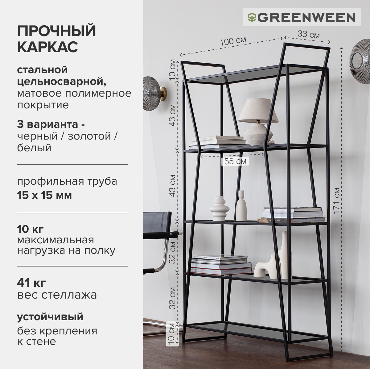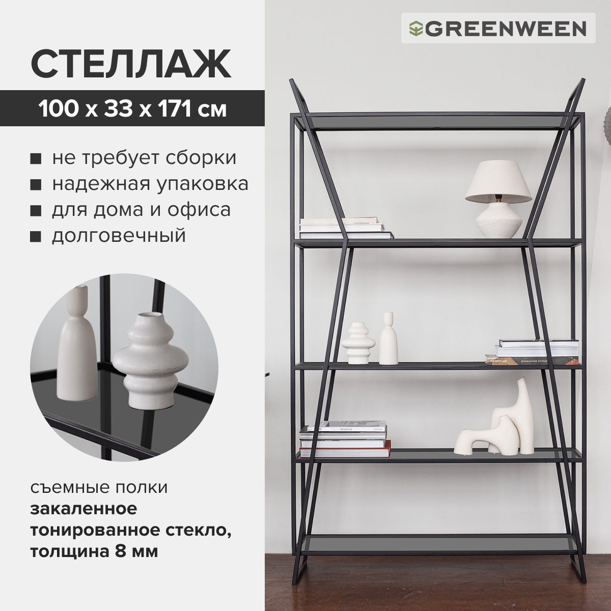 Современный стеллаж OSLO – это стильное и функциональное решение для вашего дома или офиса. Прочный каркас стеллажа OSLO из стальных труб с порошковым покрытием гарантирует долговечность, а полки из закаленного тонированного стекла выдерживают до 10 кг.