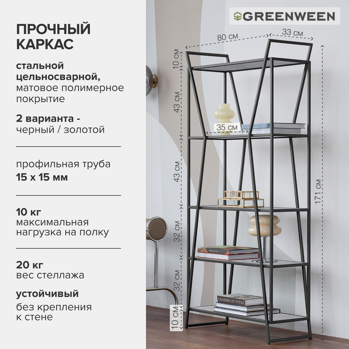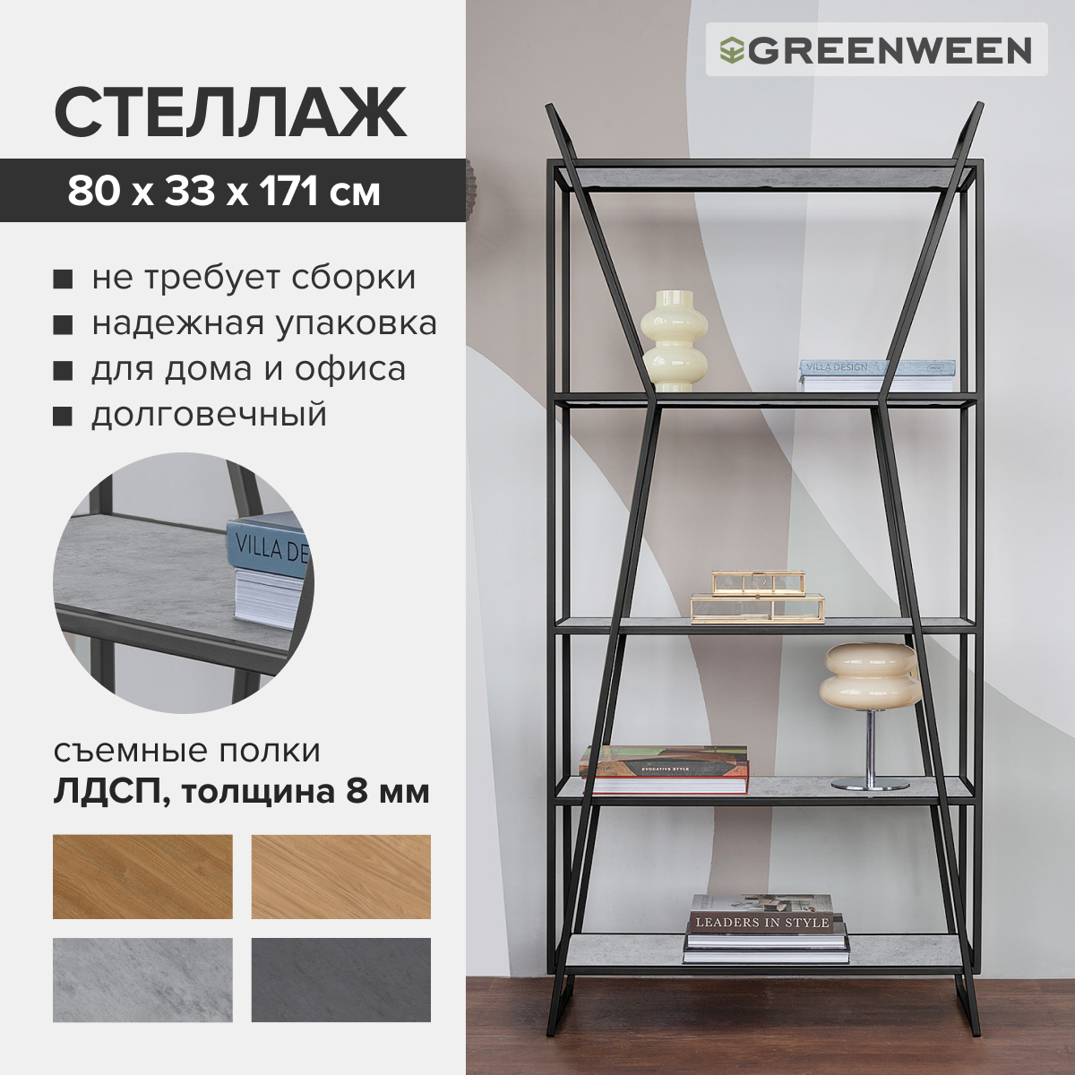 Современный стеллаж OSLO MINI – это стильное и функциональное решение для вашего дома или офиса. Прочный каркас стеллажа OSLO MINI из стальных труб с порошковым покрытием гарантирует долговечность, а полки из ЛДСП до 10 кг.