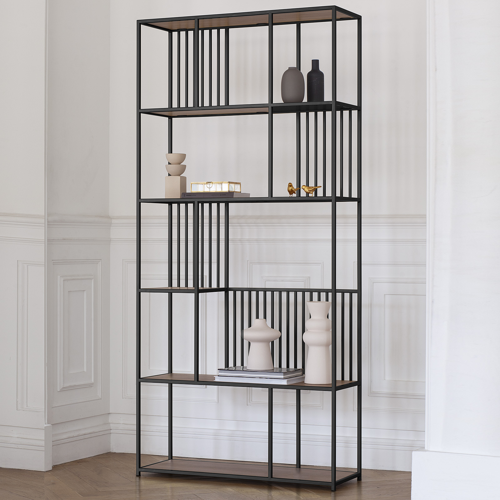 Черный металлический стеллаж SOHO с полками из ЛДСП отличается элегантным дизайном и функциональностью. Стальная конструкция обеспечивает прочность и долговечность.