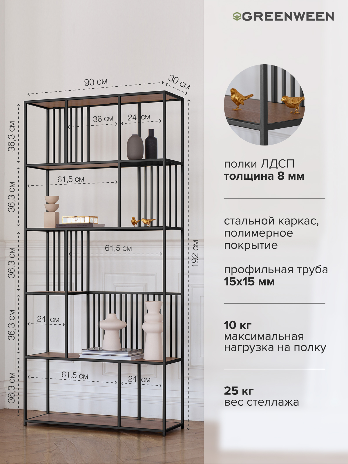 Стильный и вместительный стеллаж станет украшением гостиной, спальни, кабинета или гардеробной. Подходит для хранения книг, журналов, фотографий, игрушек и комнатных растений.