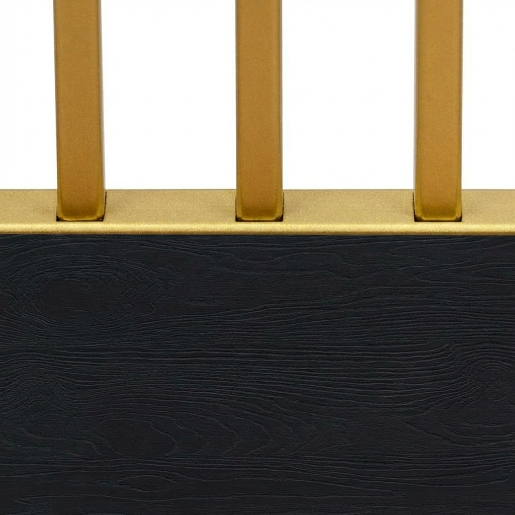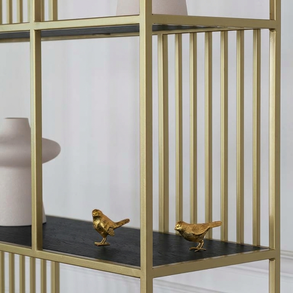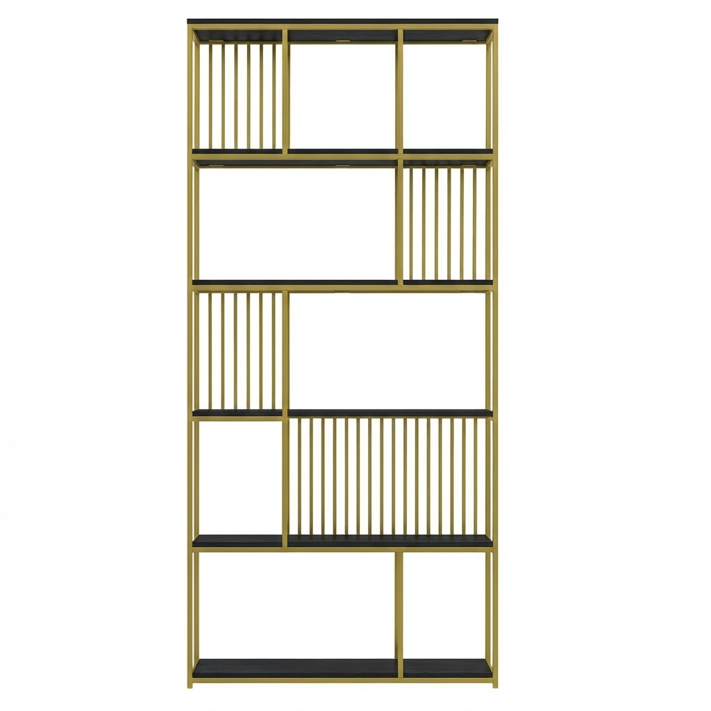 Золотой металлический стеллаж SOHO с полками из ЛДСП отличается элегантным дизайном и функциональностью. Стальная конструкция обеспечивает прочность и долговечность.