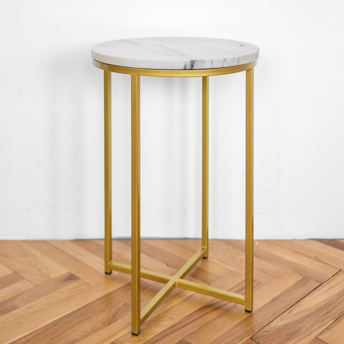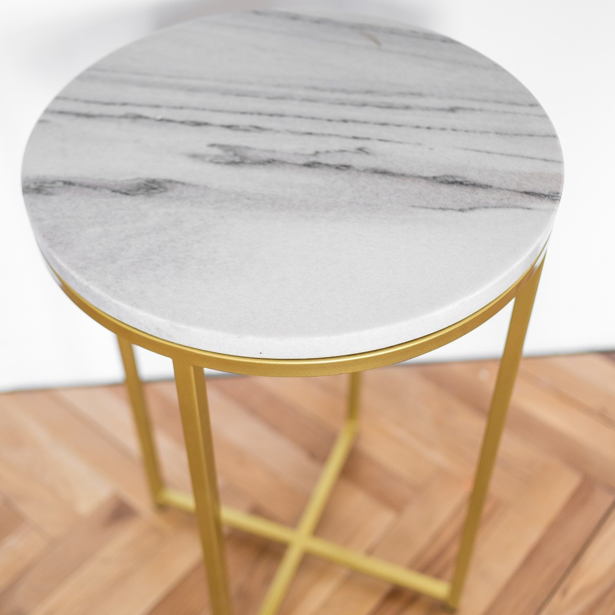 Круглая столешница выполнена из натурального мрамора толщиной 20 мм, выдерживает нагрузку до 10 кг. Полированная поверхность имеет неповторимый и уникальный узор, его оттенок и природный рисунок могут отличаться от представленного варианта на фотографии.