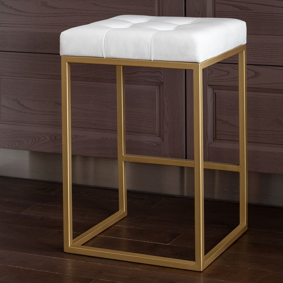 Сиденье толщиной 8 см выполнено из велюра в бежевом цвете